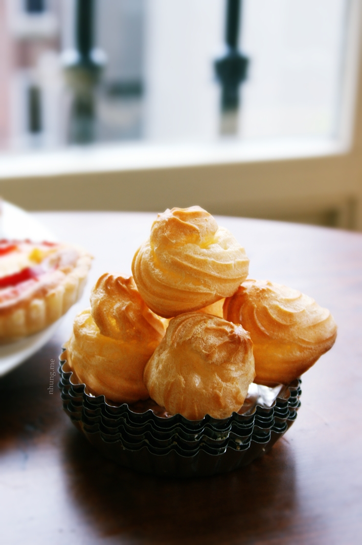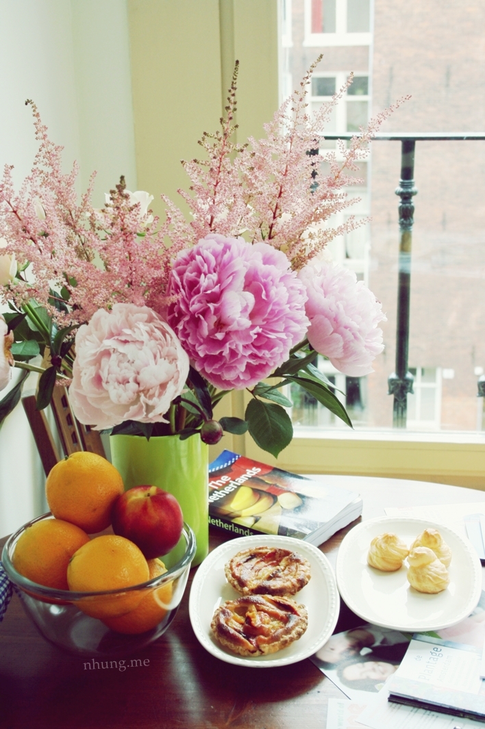 A friend stayed at my place for a few days when she came visit the city. We drank some tea with nectarine tarts, some cream puffs (choux a la creme) on the first brunch that she arrived at the city.  We were reading travel books to see what places she would like to visit.