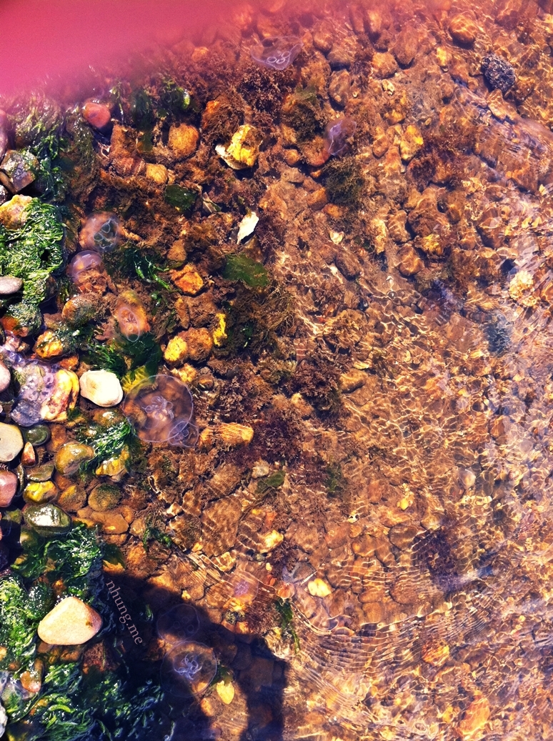 After catching oysters, we moved to a shore to have the BBQ, the surrounding scenery was rather romantic with the view of people windsurfing, leisurely floating jellies in transparent waters.