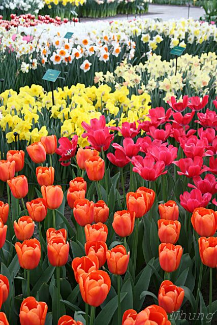 My bf and I went to Keukenhof, Lisse, the Netherlands, which is known as the world’s largest garden and also the Garden of Europe yesterday.  It was as I expected of great variety of flowers, according to its official website at keukenhof.nl, there are approximately seven millions bulb of flowers. I was entirely amazed at how beautiful flowers can be and it was really interesting to see fields and fields of flowers. Just like looking at a pretty magnetic mat but made of colorful flowers.